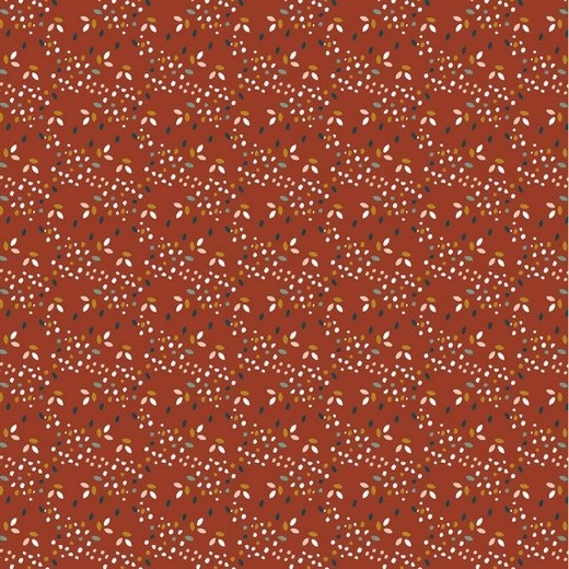 Stevige katoen met confetti print op een roestkleurige ondergrond.